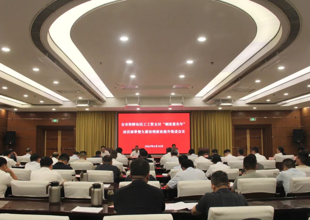 6月18日上午,我市召开保障农民工工资支付“制度落实年”动员部署暨欠薪治理质效提升推进会议,深入分析当前保障农民工工资支付工作形势,动员全市上下以开展“制度落实年”活动为抓手,聚焦重点任务,全力推动欠薪治理工作提质增效。副市长左文出席会议并讲话,市政府副秘书长杨会锋主持会议。市委组织部副部长、市人社局党组书记、局长尹作义通报全市治理欠薪工作情况。