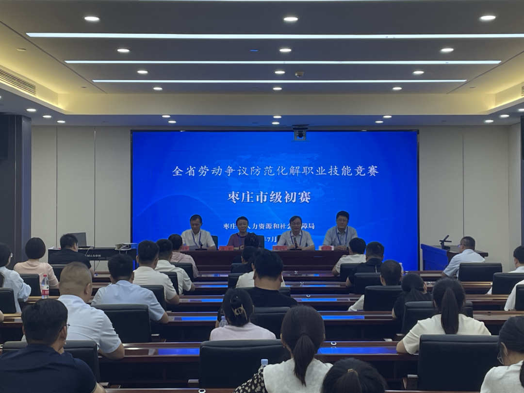 为进一步贯彻落实习近平法治思想,全面提升劳动人事争议源头预防和多元化解能力,筑牢和谐劳动关系基石,7月24日,枣庄市举办全省劳动争议防范化解职业技能竞赛市级选拔赛。来自市、区两级仲裁机构、调解组织和工会系统的41名仲裁员、调解员和工会干部参加了现场笔试。
