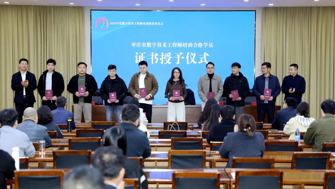 本次高研班采用专家授课、案例研讨和实地培训相结合的方式进行,在前期国家数字技术工程师培训机构山东大学精心培训下,11名专业技术人才培训合格,活动现场为枣庄市第二批数字技术工程师颁发合格证书,为推动国家数字技术工程师培育项目实施、促进我市“6+3”产业数字化转型发展,构建更加高效、协同的产业发展模式提供了新的视角。