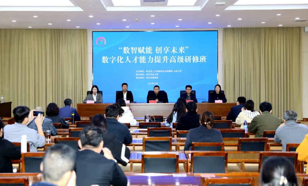 为推进数字经济人才培养,提升数字经济人才服务产业的能力,10月24日,数字经济人才与产业融合创新发展高级研修班在枣庄市委党校成功举办,本次研修班由枣庄市人力资源和社会保障局联合山东大学主办,枣庄创业大学承办。山东国家应用数学中心副主任、应用数学高等研究院常务副院长尹上,山东国家应用数学中心综合办主任任婷婷出席开班仪式,山东大学副教授宋文围绕人工智能与大数据分析内容进行授课,来自各行业从事数字技术工作的50名学员参加培训。